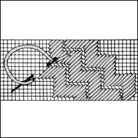 A close, flat fill made up of alternating groups of three or four vertical and four horizontal satin stitches. Found in Jacobean embroidery.