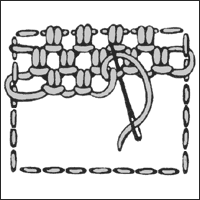 A drawn fabric stitch that reverses to Cross Stitch. When used for an area larger than the typical single line, for filling or a border, Four-sided Stitch has been called Four-sided Border and Four-sided Stitch Filling.